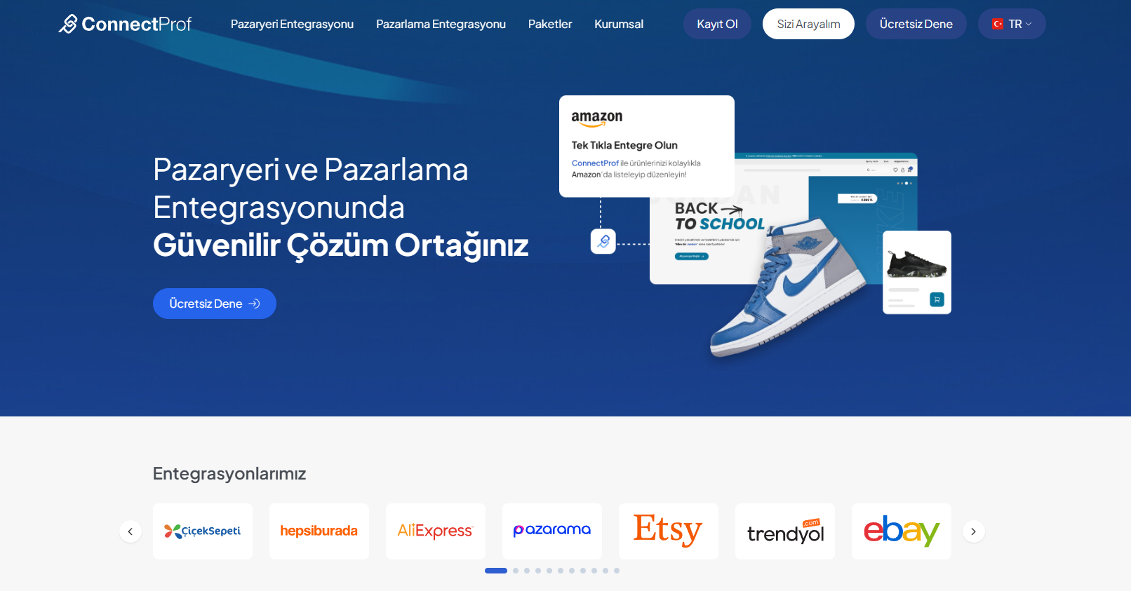 ConnectProf ile Türkiye ve dünya genelindeki aşağıdaki satış kanallarına tam entegrasyon sağlayabilirsiniz: