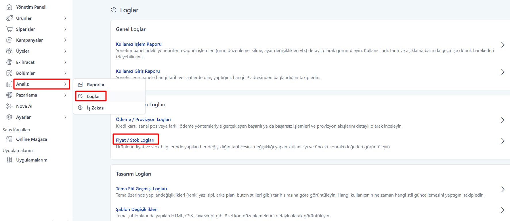 - Fiyat / Stok Logları menüsüne tıklayınız.